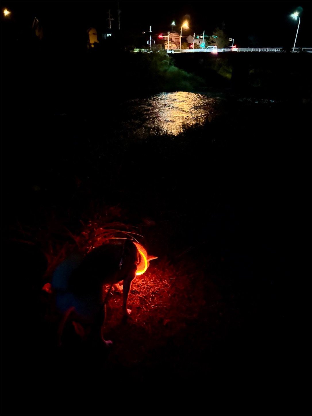 というわけで、犬の存在を気づいてもらうためには犬自体に光源がないと危ないのです。